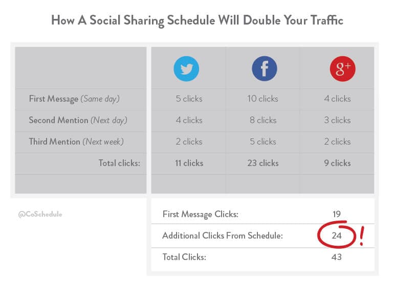 In case you haven't heard, it's ok to promote your content on social media more than once. Networks like Twitter actually require it for true success. One of the easiest ways to grow the number of readers for each post you write is to simply share it more often. If each share results in a few new clicks, the math should take care of itself pretty quickly.