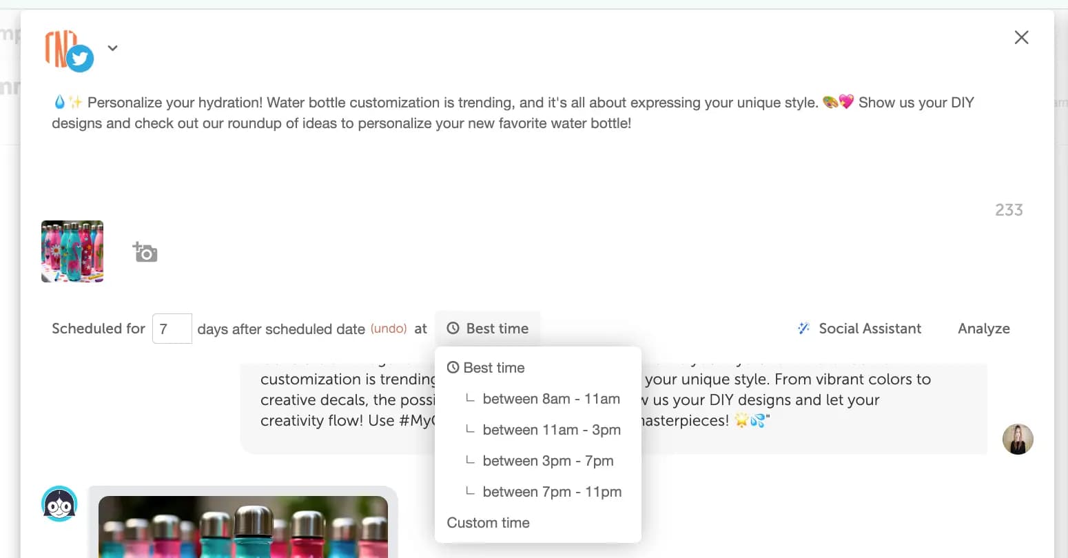 Then instantly schedule them in a social campaign to promote your blog post as soon as it publishes!