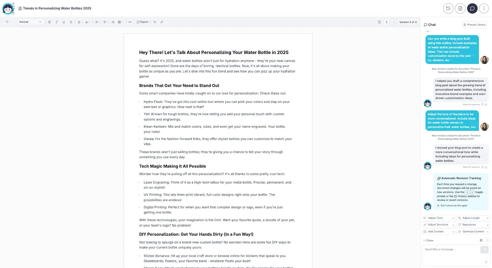 - Tone and Style: Maintain desired voice with ease.