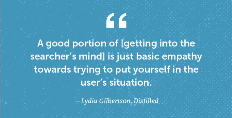 - “A good portion of [getting into the searcher’s mind] is just basic empathy towards trying to put yourself in the user’s situation.”