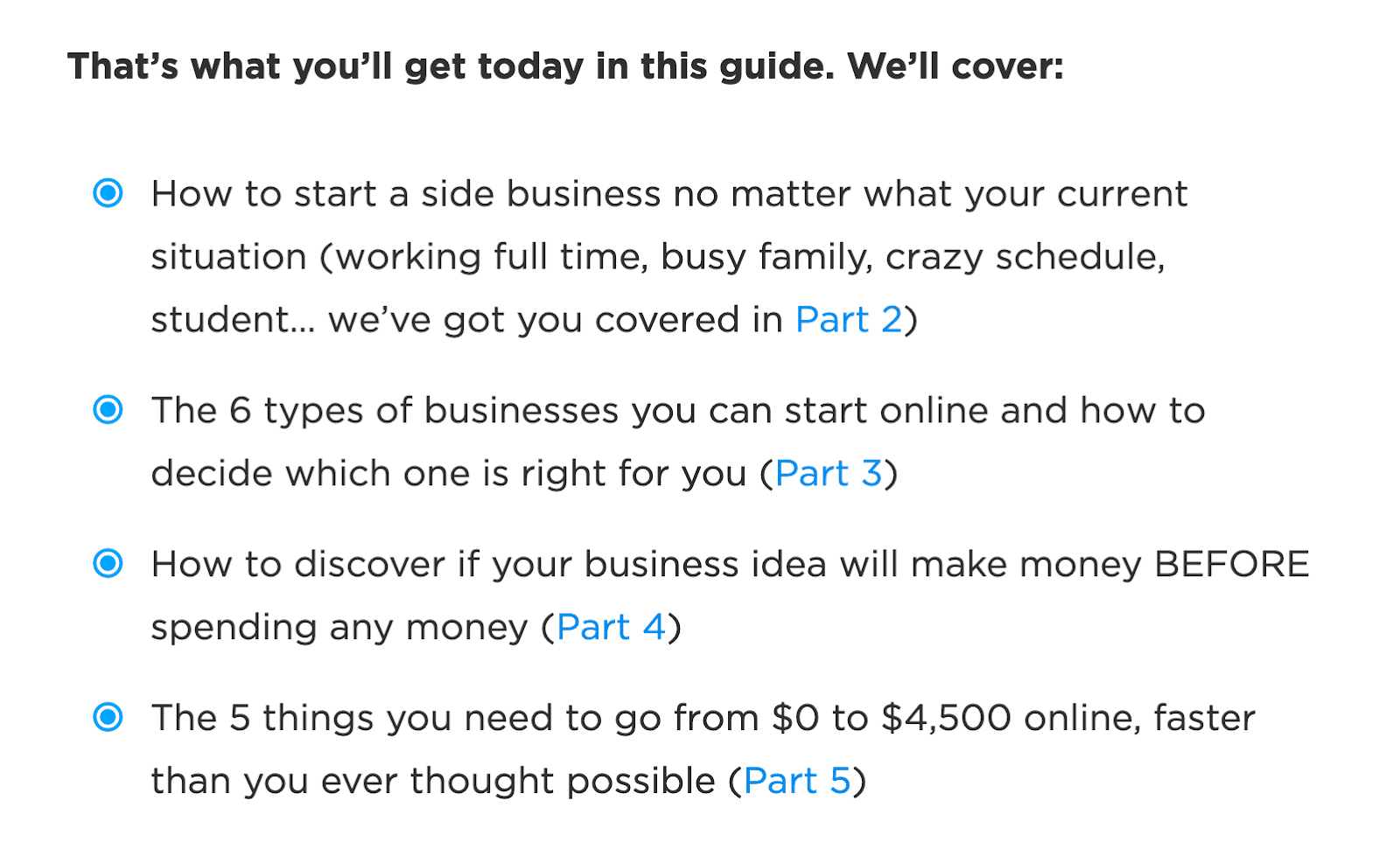 Starting with the title, you can see that they are creating a “Guide” for Profitable Business Ideas.