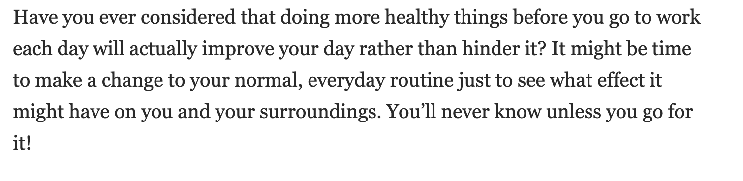 For example, “10 Things Healthy People Do Before Going To Work Every Day” shows the number of steps to do before the activity.