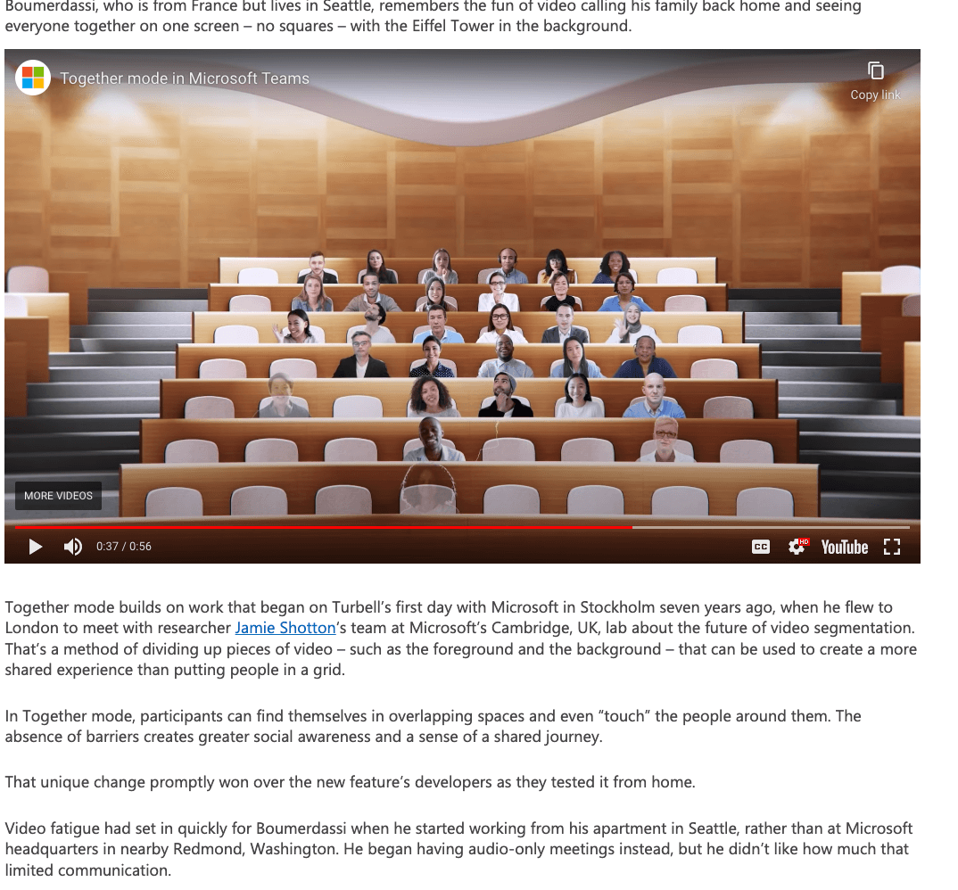 Microsoft took this opportunity to launch “Together Mode” to pull participants into a virtual reality mimicking the sensation of being together. They partnered with the NBA to simulate the crowd experience.