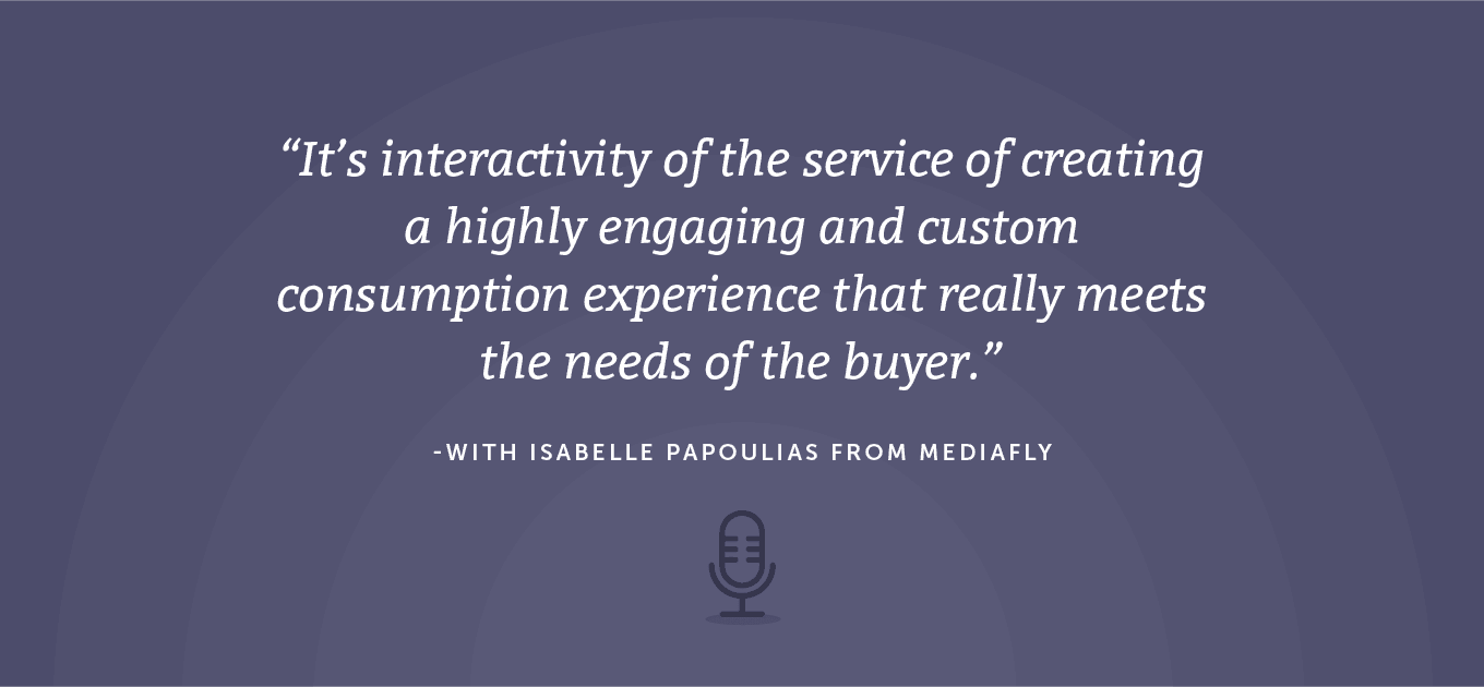 Today’s guest is Isabelle Papoulias, CMO/Vice President of Marketing at Mediafly, where she oversees all of Mediafly's marketing efforts and works with its sales and business development teams to ensure continuous growth. She shares insights on how to break the sales and marketing mold using interactive content.