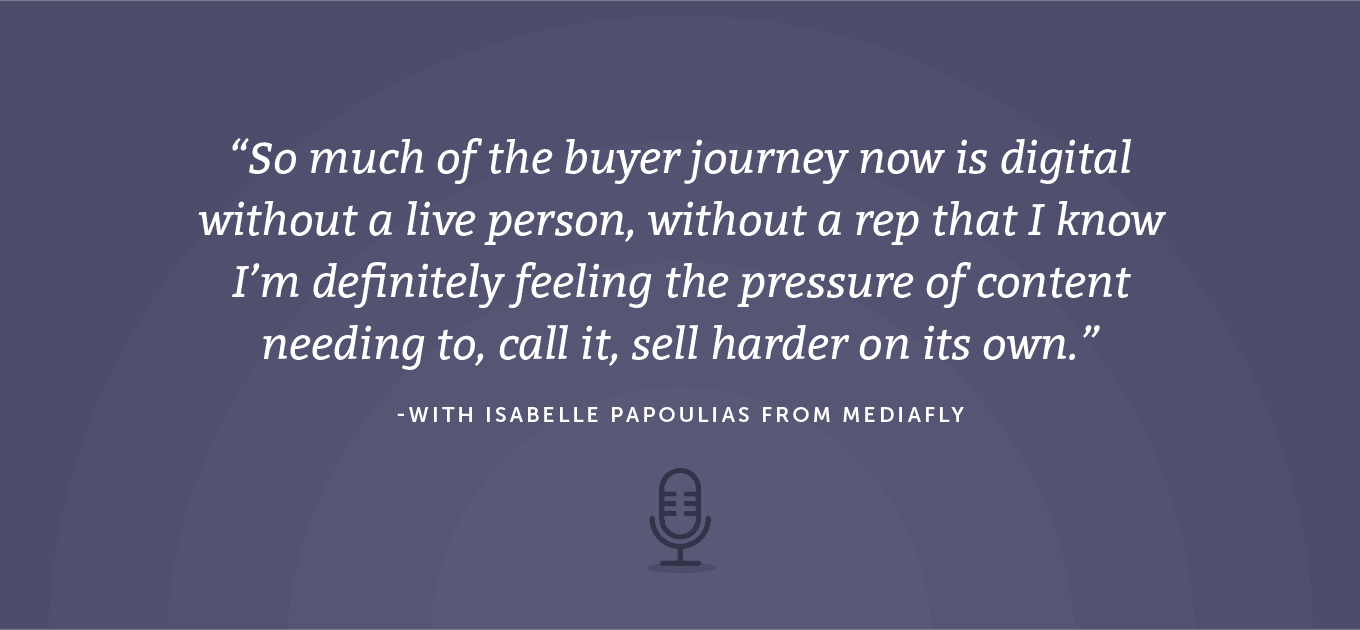 - “So much of the buyer journey now is digital without a live person, without a rep that I know I’m definitely feeling the pressure of content needing to, call it, sell harder on its own.”