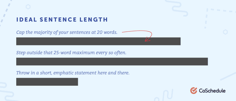 I may sound like I’m contradicting the point I made above, but hear me out: Your sentences can vary in length while still being succinct. Cap the majority of your sentences at 20 words, but don’t be afraid to mix it up. Throw in a short, emphatic statement here and there. Step outside that 25-word maximum every so often.