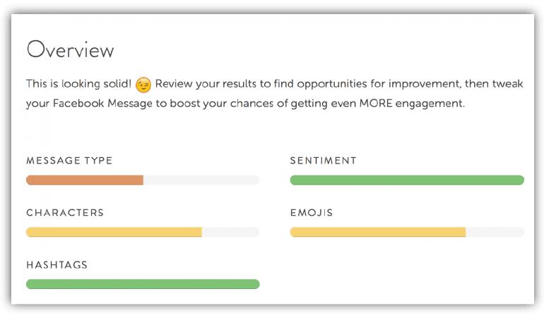 As you scroll down the list, you’ll see an overview of what your message does well and what you can do to improve.