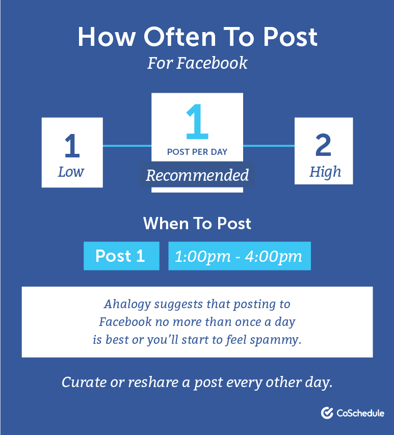 Planning your Facebook content strategy also involves deciding the types of content you’ll create — e.g., text-based content, images, infographics, videos, stories, events, and whatnot — and setting your posting schedules.