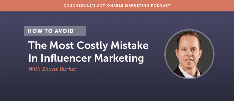 Eric: When I was a kid, I got into a lot of mischief with my friends, as I venture, you probably did as well when you were children. I had this one friend, his name was Clint, and we just did a lot of stupid things. When they were particularly moronic, we always got in trouble, our parents found out, I’d be getting yelled at and my number one go to argument was, “Well, Clint was doing it first.” You know what the response was. You can see it coming a mile away. “Well, if Clint jumped off the bridge, would you, too?” Two things. One, that’s not really fair to my mom. She sounds nothing like that. She’s a wonderful mom with a beautiful voice. Two, turns out maybe I should’ve done more of what Clint was doing because he is now the VP of Strategy and Development at The LA Times. Kind of funny anecdote but really what it does is it really sums up just how influential people that we look up to or we hang around or that we trust can be, especially at that age, and really no surprises we grew up, that doesn’t change. Nielsen, a whopping 92% of consumers around the world say they trust earned media such as word-of-mouth and recommendations from friends and family above all other forms of advertising. Well, marketers have figured it out, and of course we have influencer marketing now. It’s sort of the biggest buzzword that I’m hearing right now. How do you tap into it? How do you leverage individuals? There’s a lot of strategy around them. I brought on an influencer himself onto the Actionable Marketing Podcast. His name is Shane Barker. He’s our guest and he’s a digital marketing consultant who specializes in influencer marketing, as well as help with product launches, sales funnel and targeting traffic strategy, as well as website conversion. He is a contributor to Ink, he’s a Fortune 500 consultant, and he has a number of A-List celebrity as clients, I’m told as well. He dives into one of the top three things to execute a successful influencer marketing strategy, and of course, what is the number one pitfall we should avoid. He hint it has to do with fake followers. One of the information around them in the news lately. Something we could have known but now everyone’s getting ousted for such a thing. He dives into all of this. It’s a great episode. I’m so excited to jump into it and have you introduced to Shane. My name is Eric Piela. I’m the Brand and Buzz Manager here at CoSchedule and the host of the Actionable Marketing Podcast. Let’s get this thing underway. All right, let’s get AMPed. Very welcome. I’m excited for my guest on today’s Actionable Marketing Podcast. I have Shane Barker. Shane, welcome to the show. Shane: Hey, Eric. Thanks for having me, man. I’m excited about talking to you guys today. Eric: Yeah, I’m excited as well. This is one of those things where I have seen—whether it’s on social media or at conferences—your face so many times, you feel like you know somebody and just like that. You picked a really cool stained glass version of your profile. I feel like I know you. This should be fun. Welcome to the show. Shane: That’s awesome. That’s good. I’ll have to tell my team that since you’ve seeing use everywhere, that’s working, that’s good. Eric: It is. It is working. I’m a Brand and Buzz guy, so I’m all about exposure and I love you’re in the right place to sell. It’s finally get a chance to sit down and talk with you. I’m pumped to talk about our topic today, which I know you tons about, and that’s of course influencer marketing. Shane, I know you’ve got an illustrious background in digital marketing. You’re a consultant, you help obviously, you specialize in influencer marketing, but you also have product launches and sales funnel and targeting traffic and a whole lot of things sort of a long repertoire. I love it if you could take a moment just to take a chance, just talk about sort of your pedigree, if you will, and kind of how you ended up really specializing in this area. Shane: Yeah, absolutely. Really, it’s always so hard to have a title because there’s so many different things that I’ve done over the years. But really, I’m a digital strategist and we do branded influencer consulting. At shanebarker.com, which is really – we do consulting for companies, that can be on the brand side and the influencer side, and it can be under just general business development that people are looking for to grow their business. I have another side of my company called contentsolutions.io and that’s where we do content marketing. We do a lot of online PR stuff, a lot of people who want brand mentions or looking to get more publicity to their company or their launch or something like that. Once a time, with people come in and, like I said, they’re looking to kind of getting an idea of what they’re looking to do to be able to take their business to the next level and we can help them do all that. That’s kind of like my daytime job is, that is the influencer marketing, the product launches, sales funnels, all that stuff, the targeted traffic, and then my night time job is actually—I don’t know if you have noticed—I’m an instructor at UCLA. My teaching course out there called Personal Branding and How To Be An Influencer, which is pretty ironic because it’s in LA. There’s plenty of people out there that either want to be actors or want to be influencers. It’s a two-part course. One part is for how to be an influencer and the second part of the course is how brands can work with influencers. I work on both sides of the coin there. Eric: That’s fantastic. You’re on the academic side, on the corporate side, some great background. I noticed in your bio, you have helped a number of A-List celebrities. Can you share any of those for us? Is all that top secret? Shane: Yeah and no. Some of them I’ve had things that are signed that my attorney would probably lose their mind 