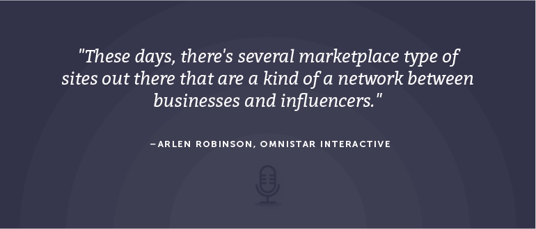 - "These days, there's several marketplace type of sites out there that are a kind of a network between businesses and influencers."