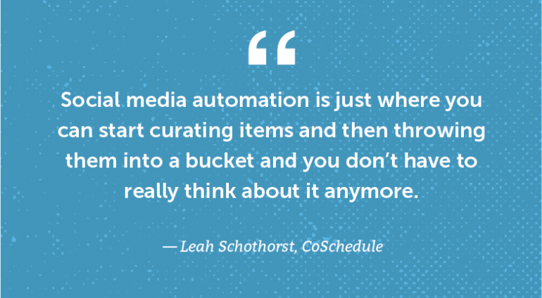 - “Social media automation is just where you can start curating items and then throwing them into a bucket and you don’t have to really think about it anymore.”
