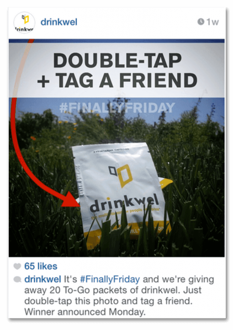 - Tag 2-3 friends to win contests. Users can be qualified by tagging two or three of their Instagram friends into the comment section of the contest photo.
