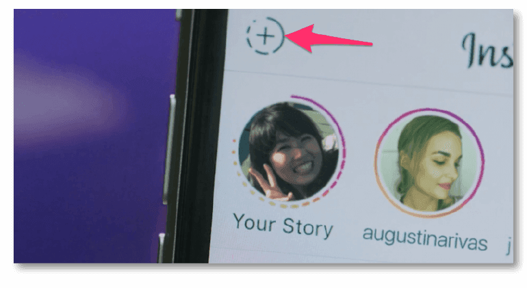 1. Tap on the plus button found on the top-left side of your newsfeed or swipe left in your Feed. You can also quickly launch Stories by swiping right from the main screen: