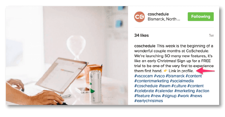 Do you want your audience to view your website, sign up for a newsletter, or read you blog? Well, you can send them in the right direction by including a link in your Instagram profile description. Instagram prohibits the use of clickable links within your captions but you can change your bio link at any time and use a call to action to drive traffic to that link.