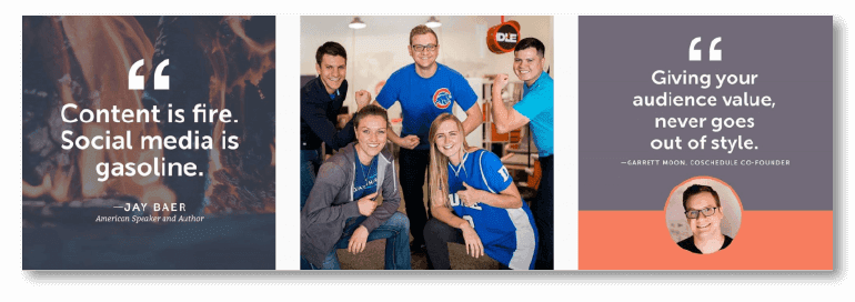 The key to having a clean Instagram page is to have all your images look similar, or branded. Brand image is how people perceive your brand and it sets you aside from others. It's important so customers can identify themselves with your product based on an image they see. Take our Instagram page for example, all of our images have the same style so it's easily recognizable that it's a post from CoSchedule.