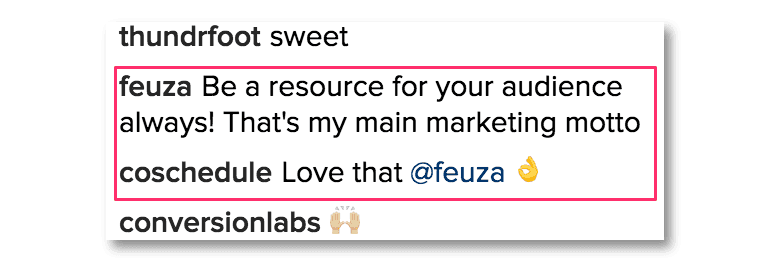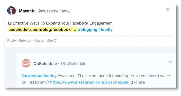 Cross promotion can boost your presence from nothing to something. Remember not to respond to every mention this way so you don’t come across as spammy. Only encourage your followers to check out your Instagram page if you truly think they would.
