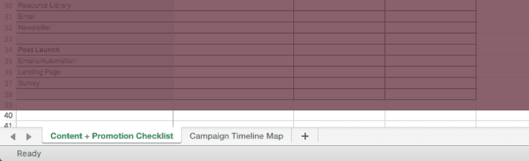 Write those names in column B in the “Content + Promotion Checklist” tab in your template.