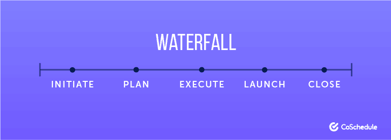Waterfall is a project management approach that is very similar to traditional project management. Projects are completed in set stages and move from step-to-step until the project is completed. You typically create a big plan on the front-end and then execute it. All while crossing your fingers that no changes pop-up. No phase can begin until the prior phase is complete, and the completion of each phase is final — meaning the Waterfall approach does not allow you to return to a previous phase.