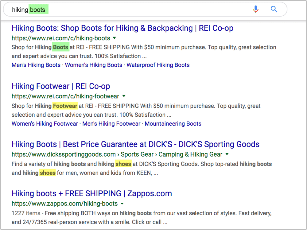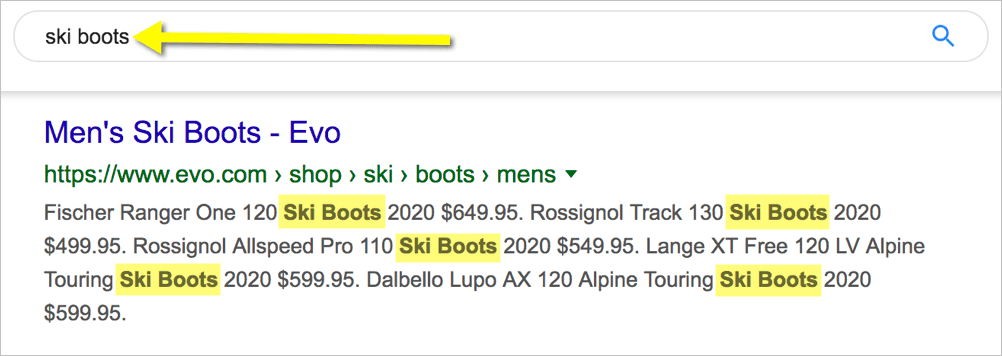 As I mentioned above, using varied vocabulary and including related concepts helps you achieve better rankings. On top of that, it can help you get more terms in bold, as Google would also highlight closely related and synonymous terms: