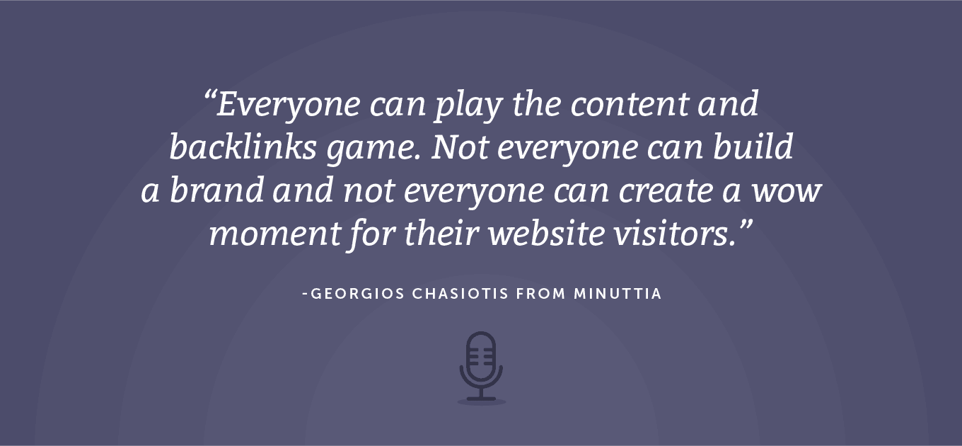 Georgios: Yes. Also, as I mentioned, most brands compete there. Everyone can play, as I mentioned. Especially if you have deep pockets, you can play the link building game. You can start buying links, you can hire an agency, you can build a team in-house, whatever. Everyone can create content. They can create deeper content and they can create content by using content optimization tools. Brands can do that and websites can do that. But not everyone, as I mentioned, can create wow moments for their users.