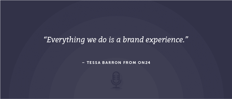 Tessa: Yeah. You as a brand need to be like a home. You have to think of it like you are building a home. You can't keep moving the foundation if you want to have a brand that stands for something and is recognizable. I know ON24 have struggled with this. We want to be more than webinars. I think at a lot of technology companies especially, you don't want to be commoditized, you don't want to be known for one thing, you want to be a platform, you want to evolve.