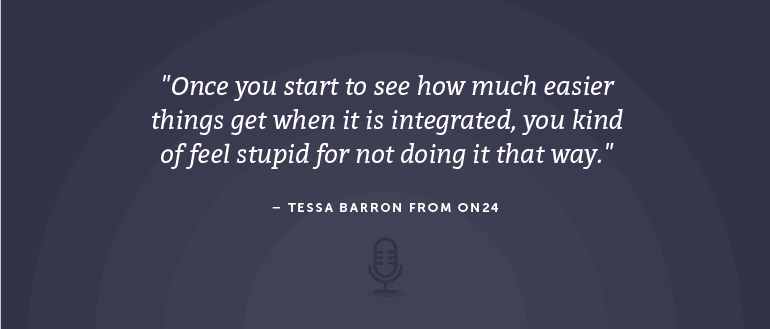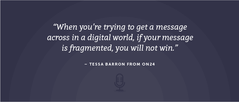 Today’s guest is Tessa Barron. She is the senior director of marketing at ON24, which is on a mission to help marketers make intimate connections and engagements in the digital world via Webinars and other platforms. Tessa describes why cross-channel campaigns are more effective than multi-channel communication.