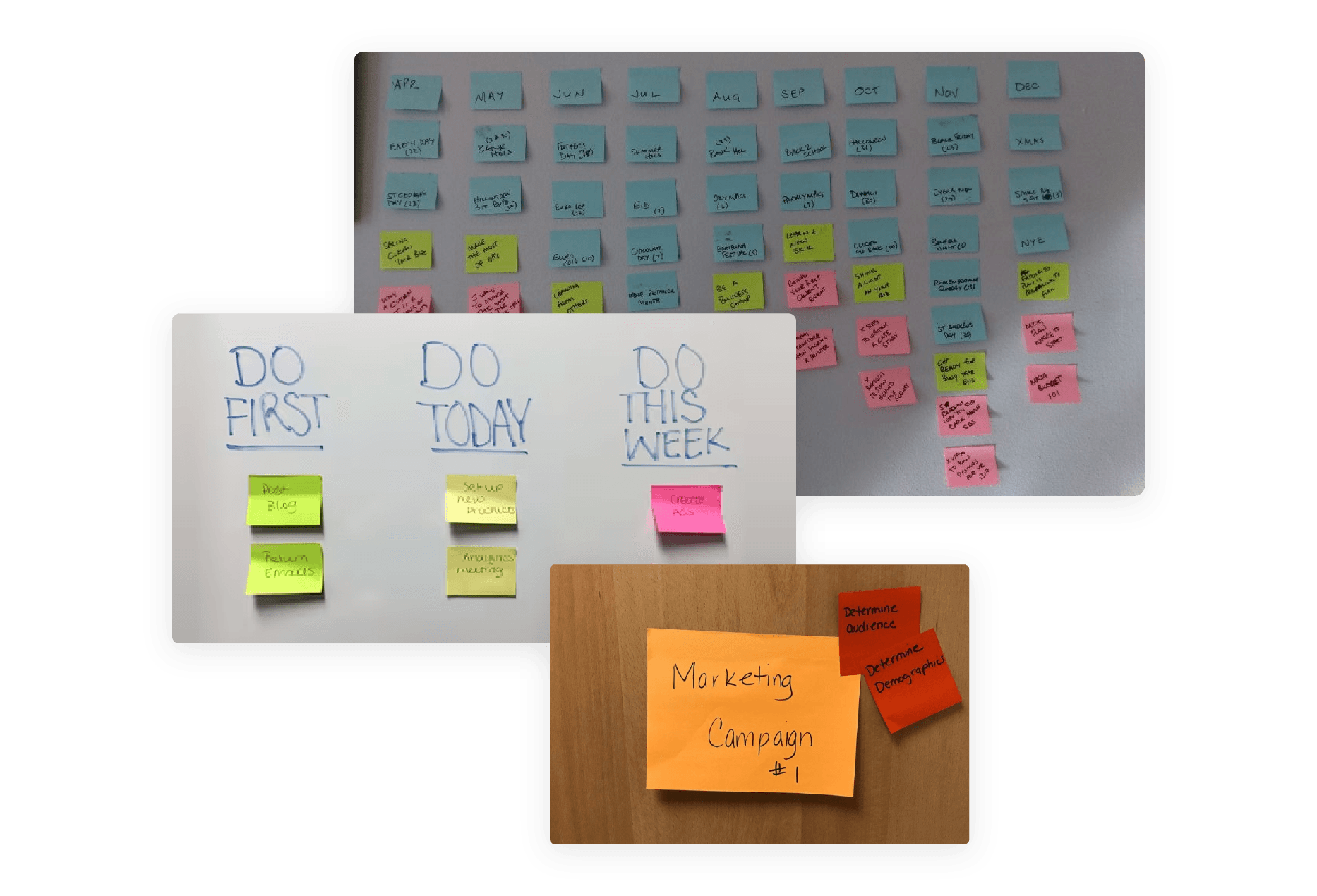 As the name suggests, this is a calendar created manually on a whiteboard that may or may not use post-it notes for denoting tasks under each project on the calendar.