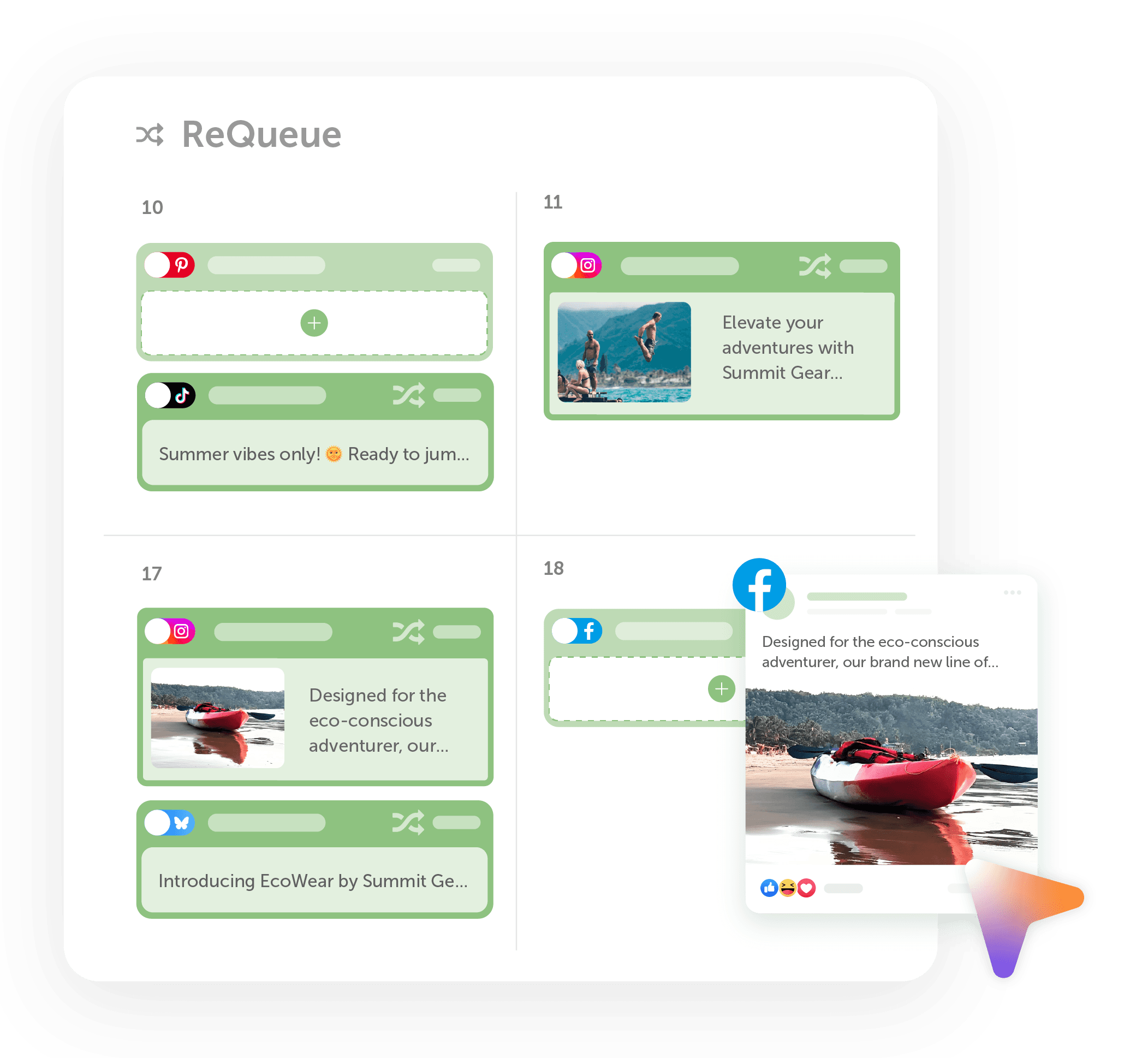 If the problem is longevity, CoSchedule fits better. ReQueue is designed to keep existing social posts in circulation after the initial publish. It pulls evergreen messages from ReQueue Groups and fills open slots in your calendar, helping strong content resurface over time without manual scheduling.