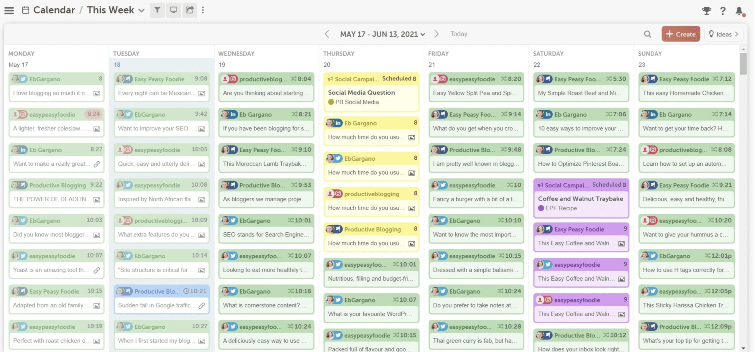 Use this view to balance repurposed content with campaigns, announcements, and one-off posts.