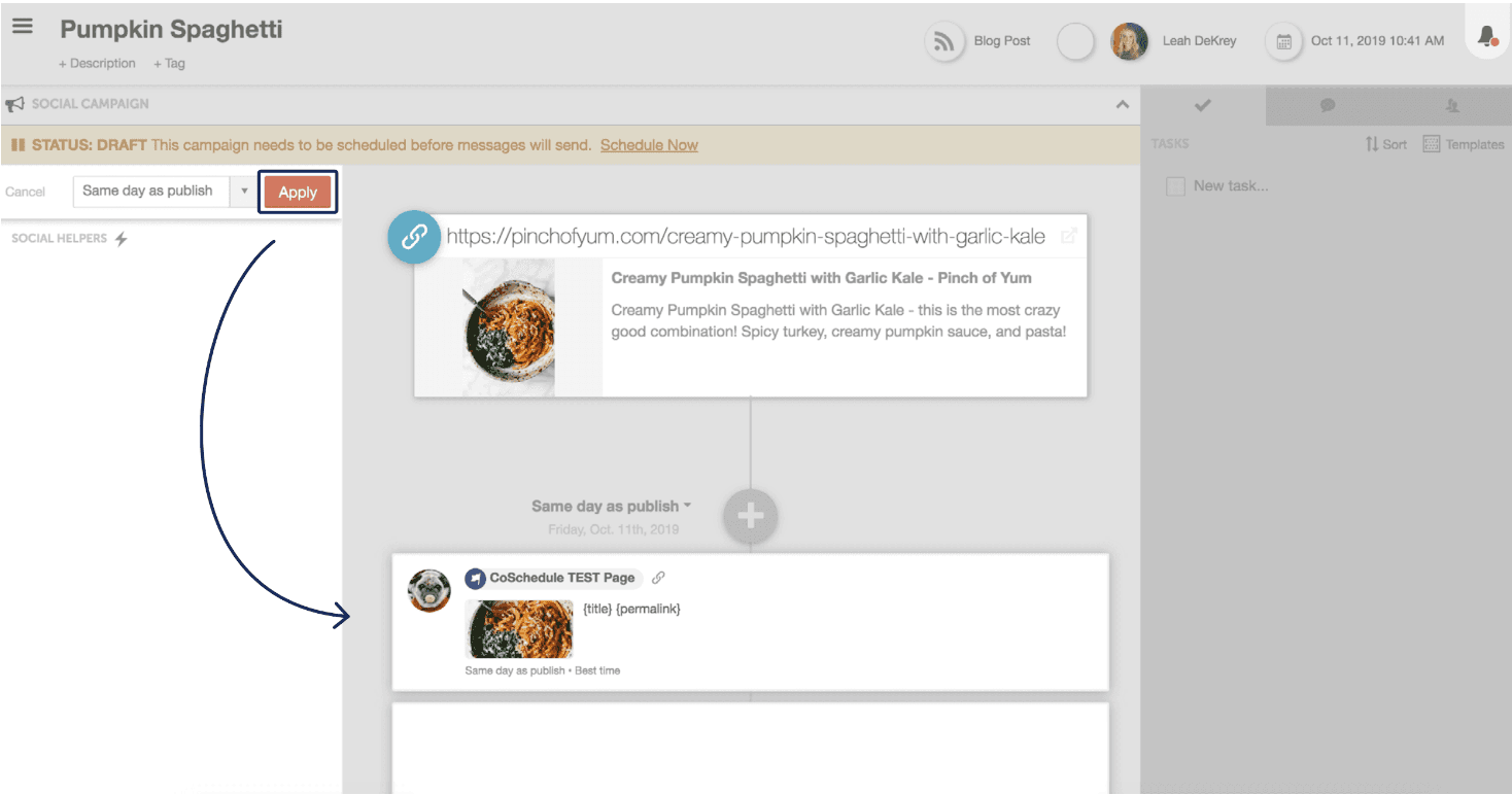 Here’s what applying a social template to your campaign in CoSchedule could look like.