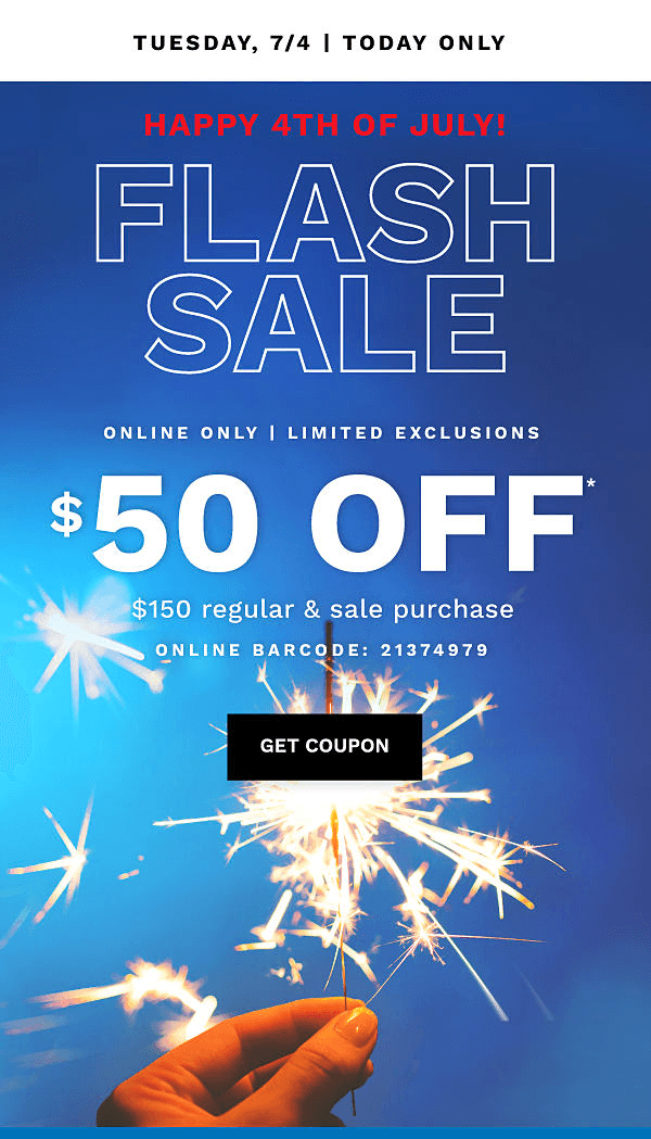 Offer a flash sale on the 4th of July to create an intriguing shopping opportunity for customers.
