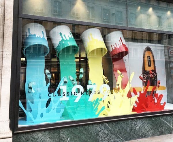 This example from Timberland shows how color and balance can create an effective display. It even goes along with the tagline, “Classic Meets Color.”
