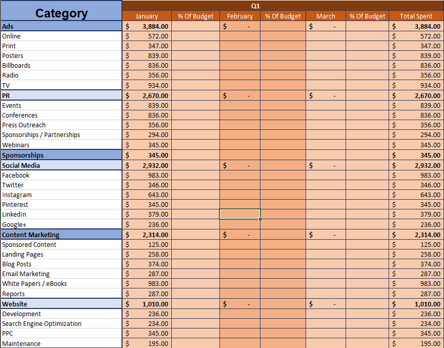 Our marketing budget spreadsheet includes the most common marketing expenses to reduce guesswork.
