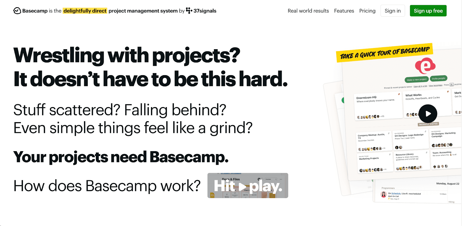 Basecamp serves as an all-in-one project management software. Implementing Basecamp’s features ensures smooth sailing and strong communication from start to finish throughout your projects. Schedule on time, chat in real-time, and organize big time.