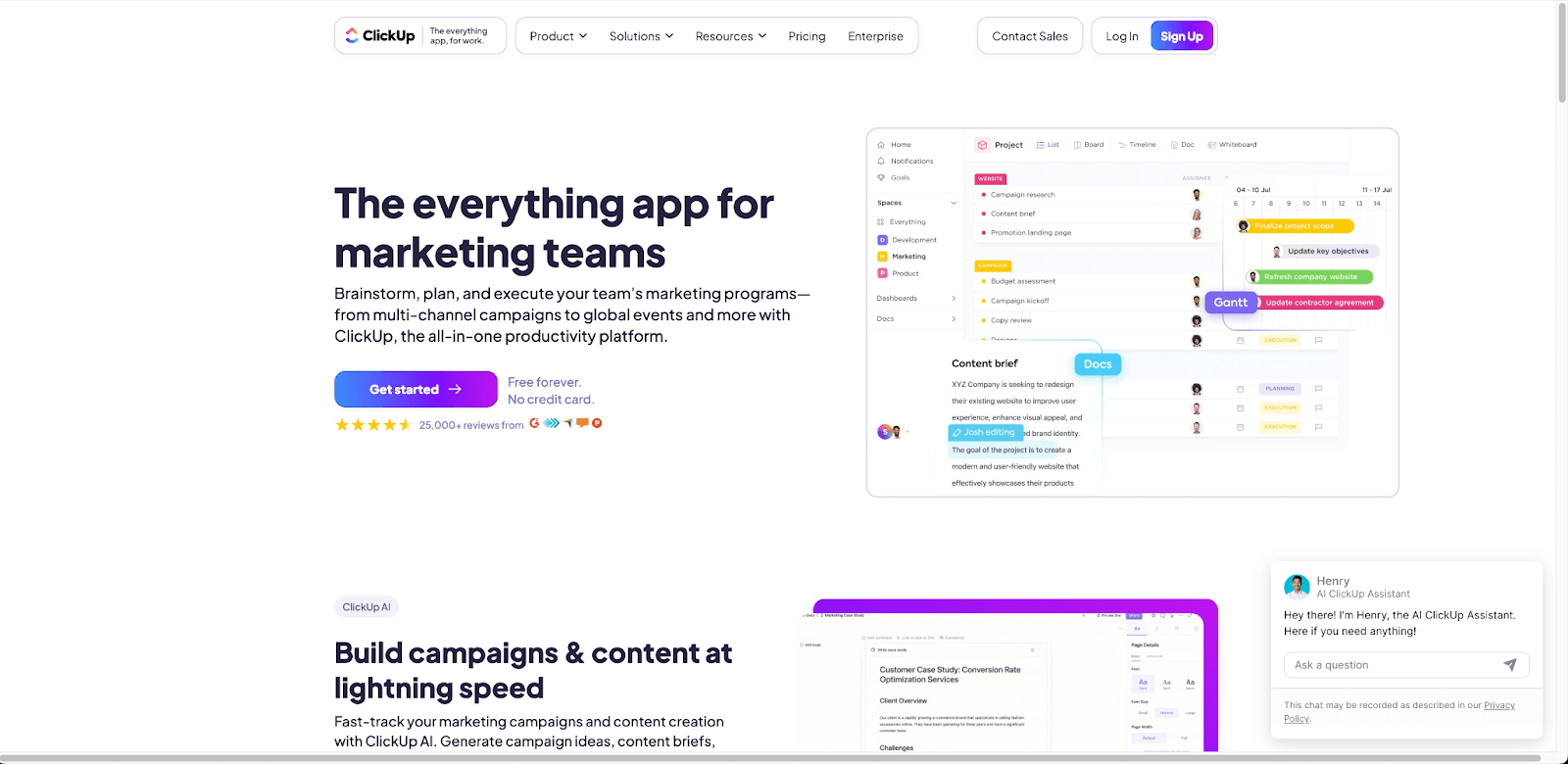 ClickUp is a multi-purpose project management software that you can tailor to marketing using existing or custom templates. Add your marketing projects and tasks, then slot them into a timeline for smoother project management. Then, use the built-in collaboration features to comment on assignments and proof documents.