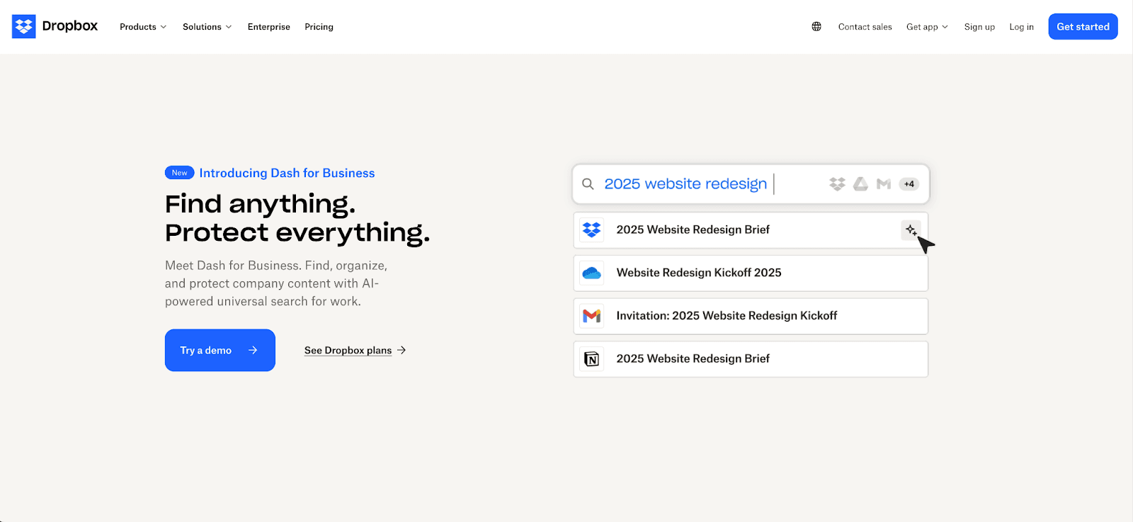 Dropbox provides encrypted cloud document storage in its base product. You can also add other Dropbox products for document signing, transfer, and backup. The free plan caps at 2GB of storage, so most teams must invest in a paid tier.