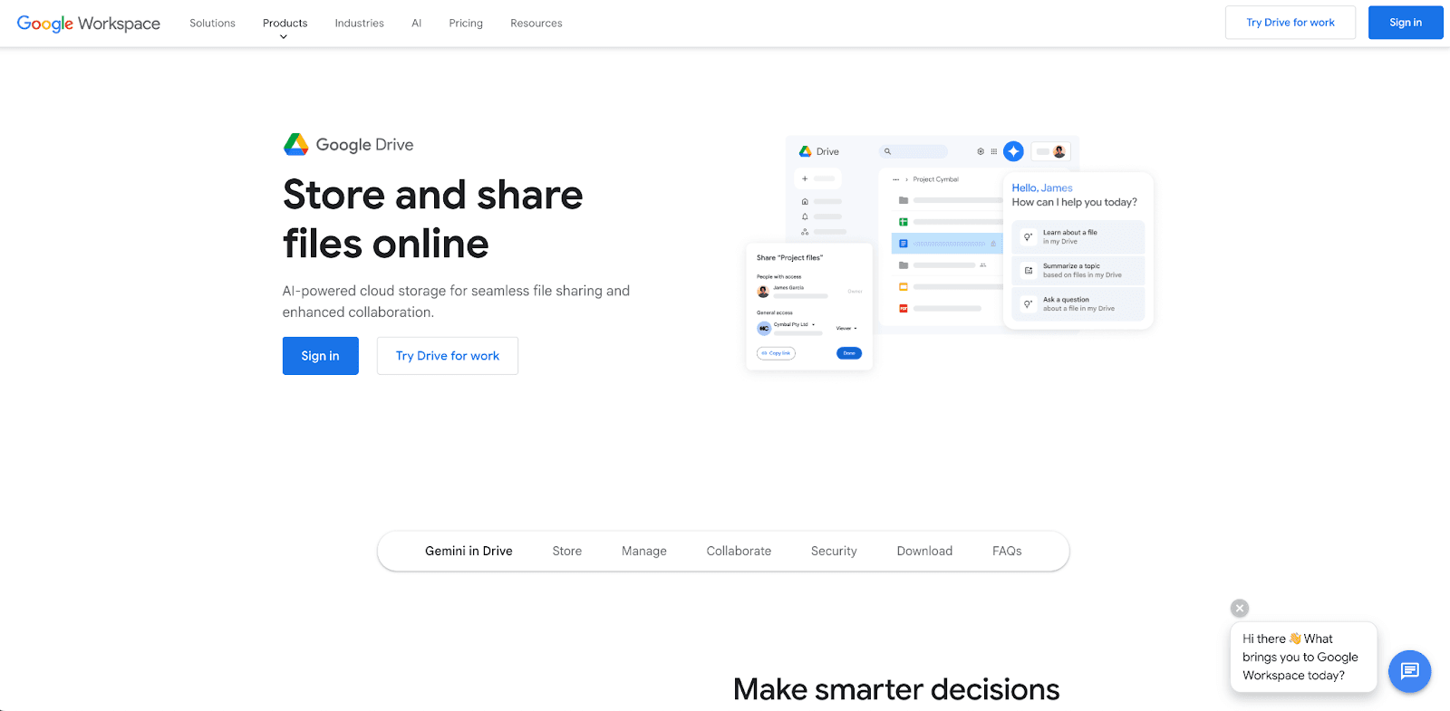 Whether it’s on its own, or as part of Google Workspace, Google Drive stores files and offers collaboration tools. If you don’t have any special security considerations, you can use Google Drive as-is for free. For added security, invest in a Google Workspace plan that includes Drive.