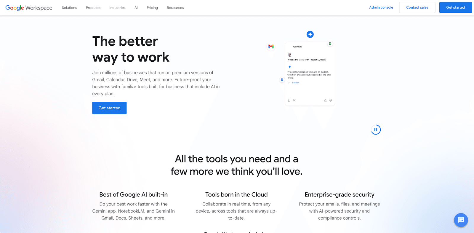 Google Workspace comprises Google’s most popular document management and collaboration apps — Gmail, Google Calendar, Google Drive, Google Docs, and Google Meet. While its core apps are free by default, you can pay for a Google Workspace plan to connect them through custom email, dedicated cloud storage, and user management.
