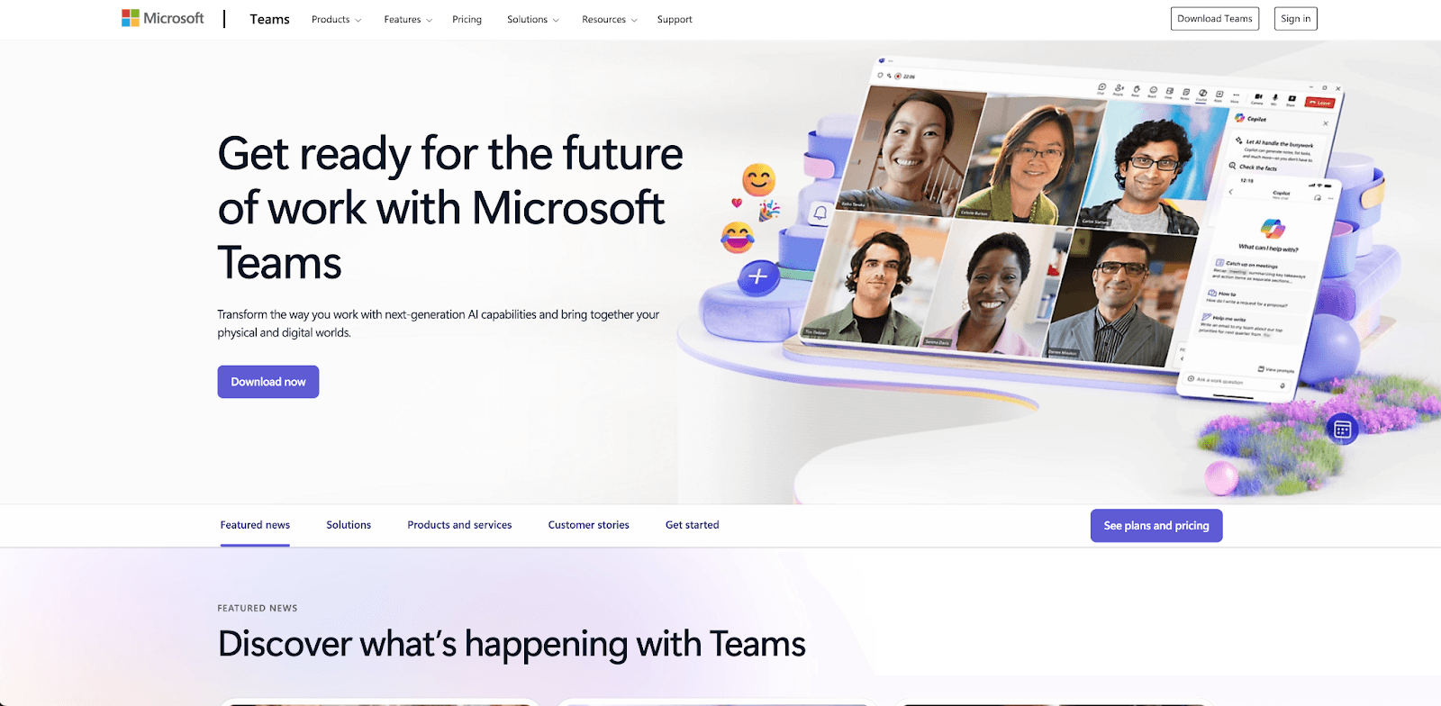 Microsoft Teams incorporates video meetings, group chats, online calls, and document collaboration into one software. Its features are geared towards internal collaboration over text, voice, and video. While it only offers paid plans, it has cheaper plans than Zoom and integrates with Microsoft 365’s apps.