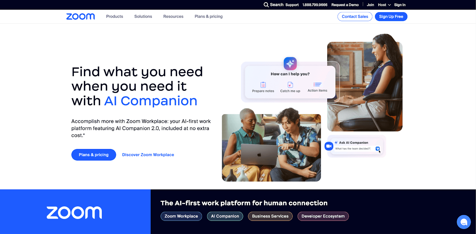 Zoom is a video conferencing app with a free base plan, making it accessible to small businesses and personal users. If you really want to invest in your collaboration options, you can opt for a paid plan with features like mail, a calendar, cloud storage, and caption translation.
