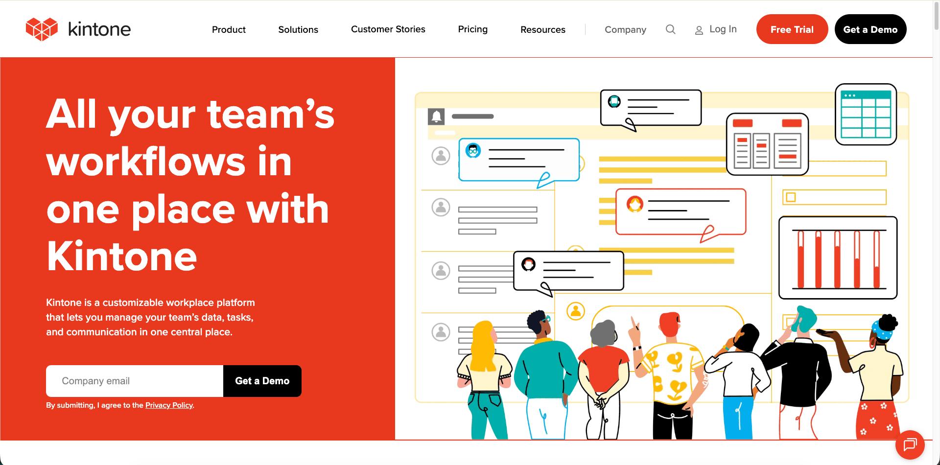 Kintone provides an all-in-one workflow process for not only the marketing team but other branches in your organization as well.