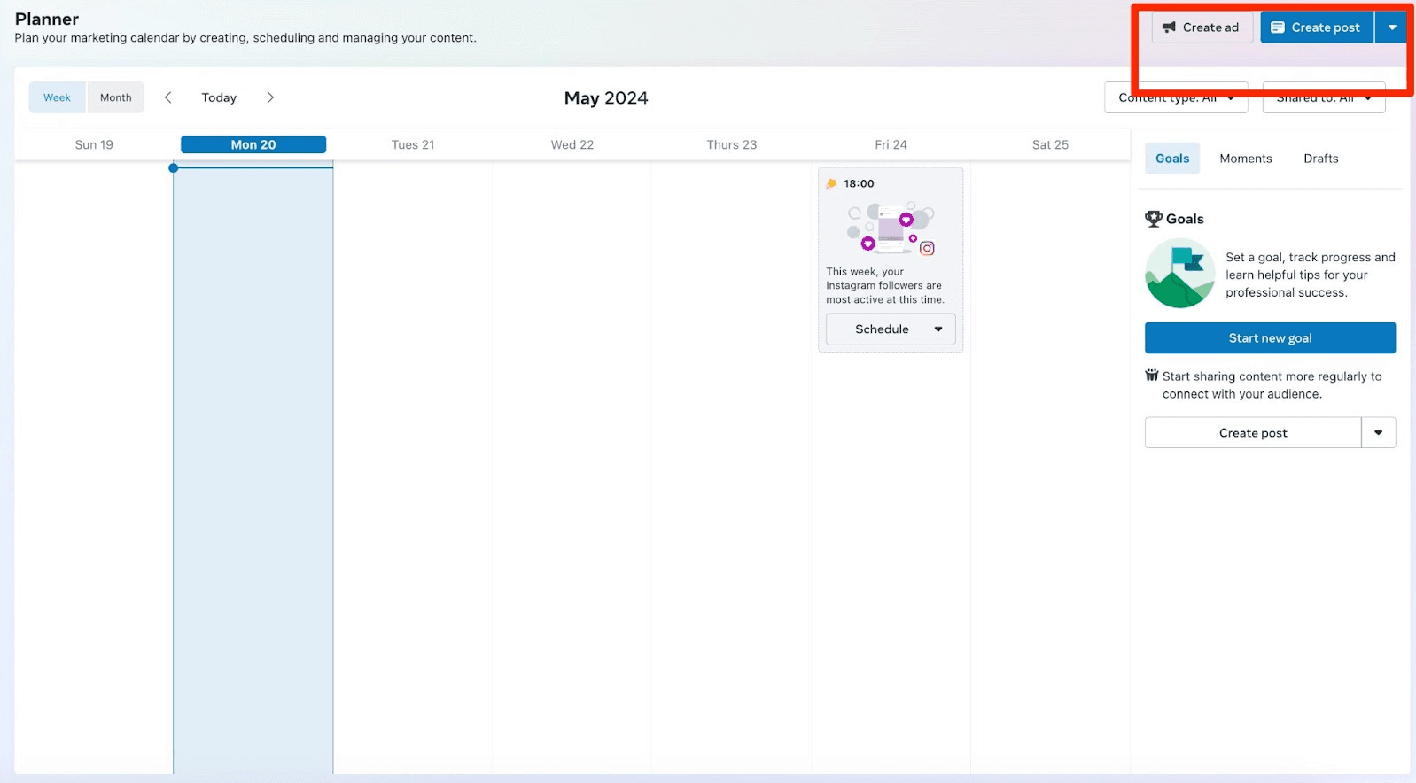 - Start scheduling posts or import your existing plan from Meta Business Suite.